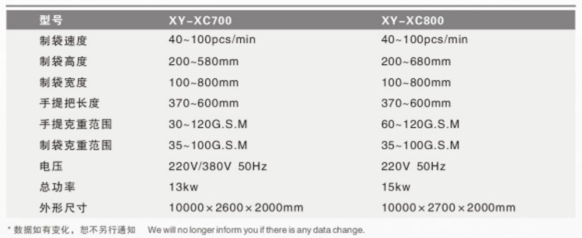 該機(jī)適用原材料為無紡布,能加工各種不同規(guī)格,不同型狀的無紡布袋,平口袋,拉鏈袋等,該機(jī)集機(jī)電為一體,運(yùn)用LCD觸模屏操作。配以步進(jìn)步式定長,光電跟蹤,電腦自動定位,電腦自動糾邊,準(zhǔn)確,平穩(wěn)。自動計(jì)數(shù)即可設(shè)定計(jì)數(shù)報(bào)警,自動打孔等工控裝置,使其生產(chǎn)的成品封線牢固,切線美觀。高速效,是你可以放心適用的優(yōu)質(zhì)環(huán)保型制袋設(shè)備。